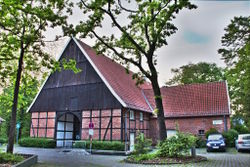 Das Haupthaus ist ein imposanter Vierständerbau in Fachwerkbauweise mit Deele, Flettküche und einem zweigeschossigen Wohnbereich. Es repräsentiert das typische Vierständerhallenhaus mit Ankerbalkenzimmerung und Überrähm-Sparren-Schwelle, auf der eine engmaschige Sparrenlage das steile Satteldach trägt. Das Deelentor ist durch einen Vorschöpsel geschützt. Der Boden der heutigen Wirtschaftsdeele, die als Versammlungsraum genutzt wird, ist mit großen Kalksteinplatten ausgelegt.